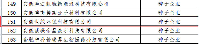 根據合肥市高成長企業遴選要求,經企業申報、縣(市)區科技主管部門初審推薦和專家評審,并經市科技局局長辦公會研究同意,安徽世綠環保科技有限公司成功入選合肥市2021年度高成長種子企業,公示如下: