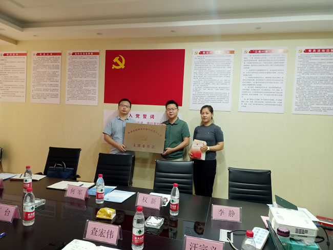 會議在莊嚴(yán)的國歌聲中開始,首先興園社區(qū)權(quán)新同志宣讀了關(guān)于同意成立中共安徽世綠環(huán)保科技有限公司支部委員會的批復(fù)文件,并由社區(qū)何軍同志為新成立的支部頒發(fā)黨牌并贈送了黨報(bào)黨刊。隨后新成立的黨支部進(jìn)行了第一次全體黨員大員及支部黨委書記的選舉。經(jīng)過不記名投票,查宏偉同志以全票當(dāng)選為支部委員會黨委書記。