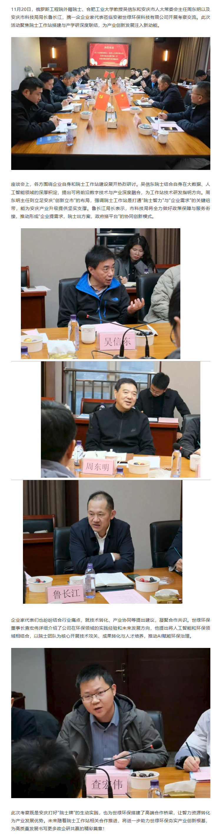 院士領銜,聚智賦能!世綠環保迎重磅考察,共話院士工作站建設
